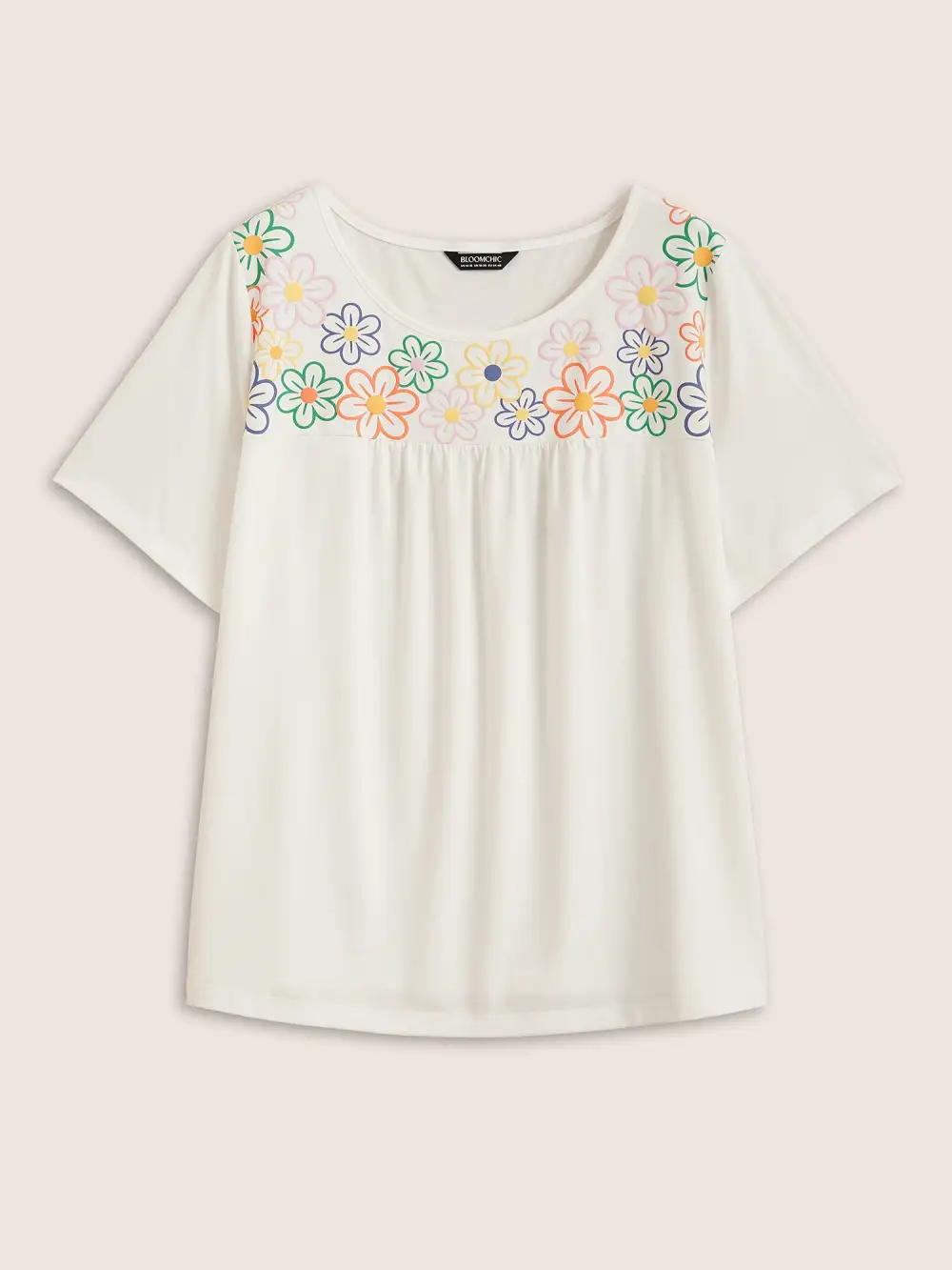 The Colorful flowers with foam printing for a cute and lively summer look, designed to be flattering and comfortable for all body shapes.